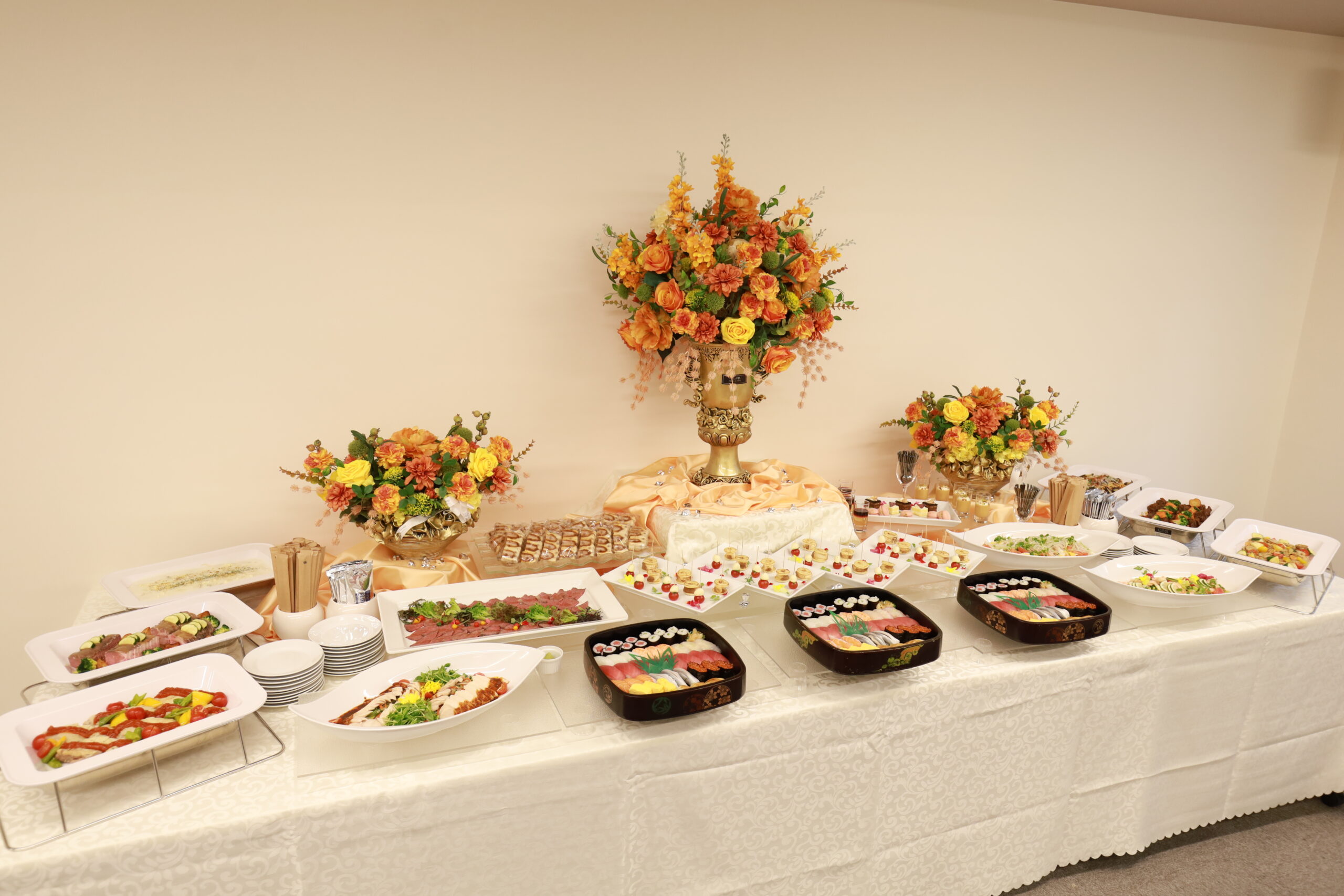 定番の出張握り寿司と大人も学生も満足の豊富なメニューで卒業祝いの贅沢ランチ - ケータリング事例学校懇親会人数 約200人費用 約150万円