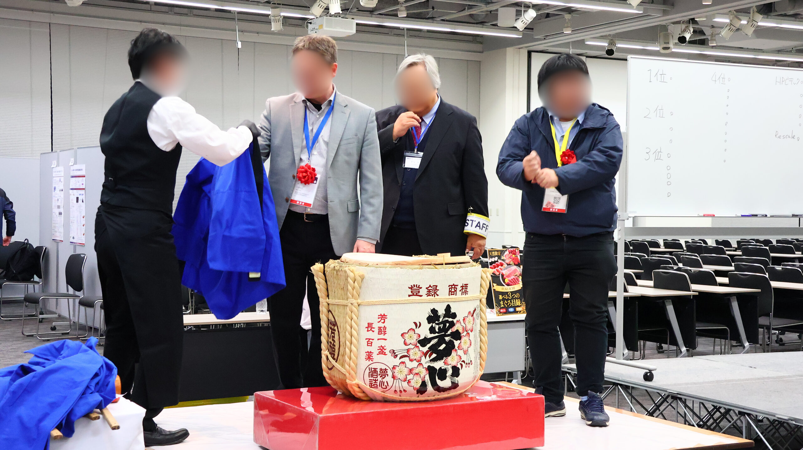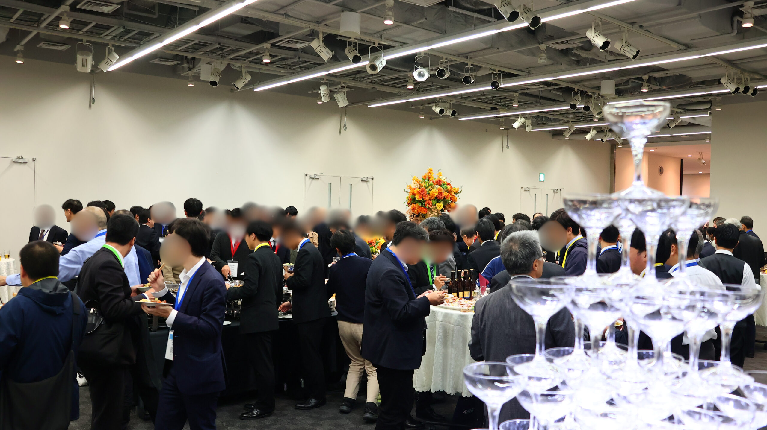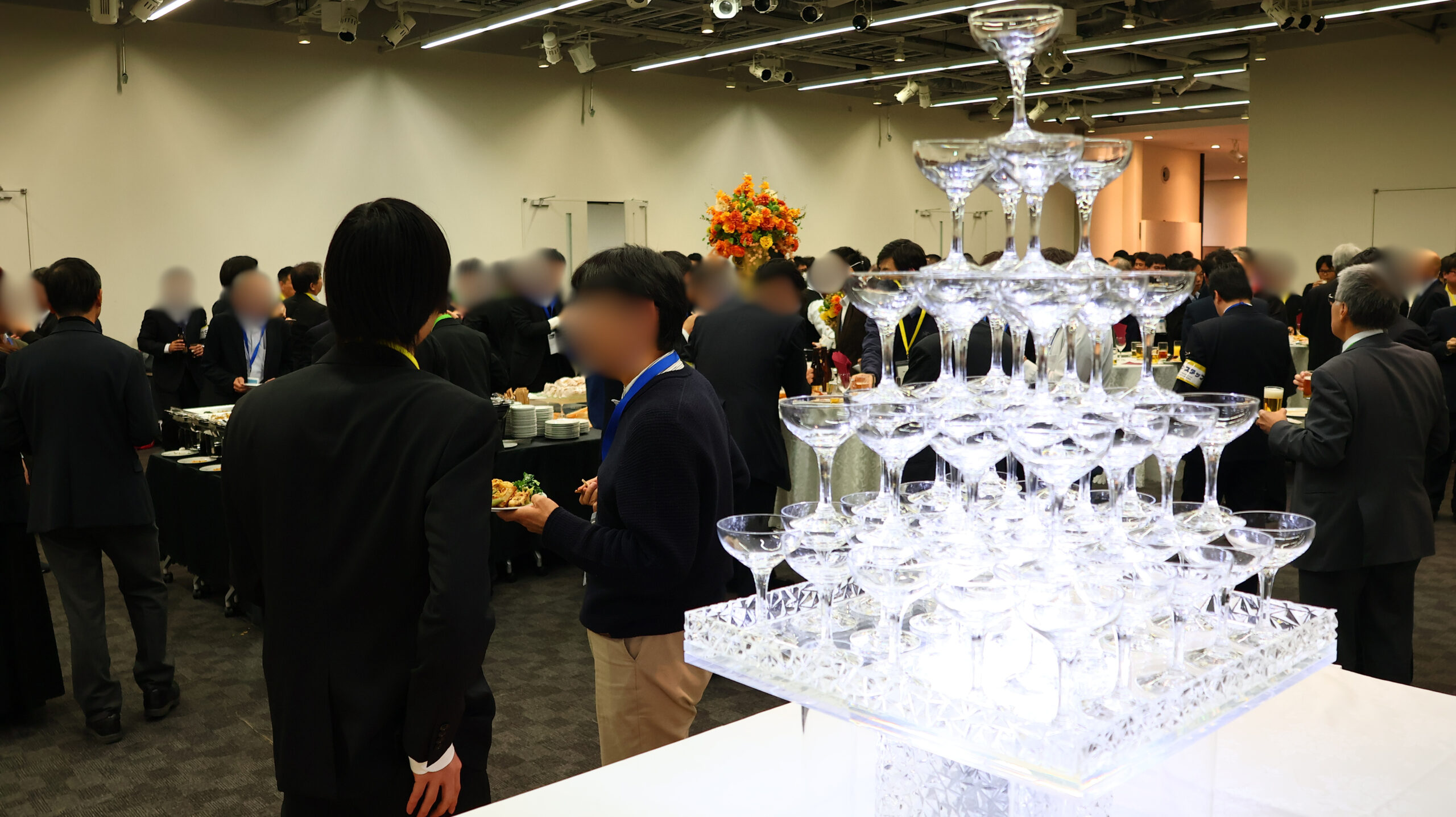 離れた場所からでも楽しめる、視覚的に華やかな余興・演出をご希望されました。・男性参加者が多いため、料理はボリューム重視をご要望されました。・転換時間が短く、当日のオペレーションに不安をお持ちでした。